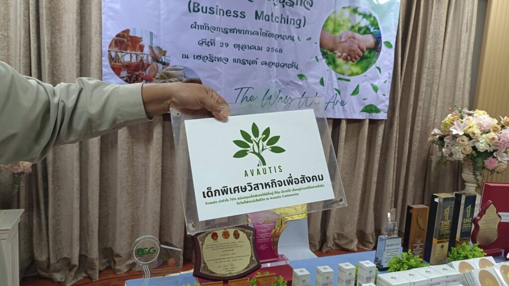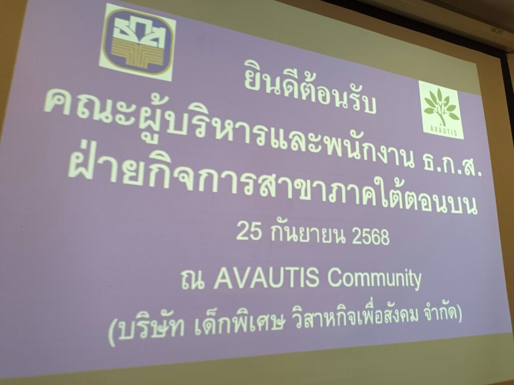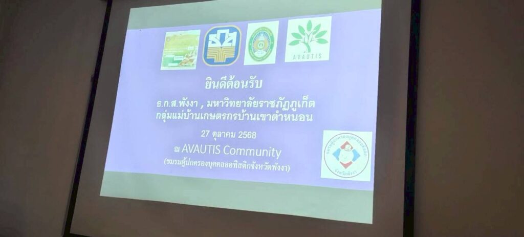 เด็กพิเศษ ขอบคุณ ธ.ก.ส. สนับสนุน อุ่มชูนำทาง เด็กพิเศษ ให้ก้าวสู่ความยั่งยืน ให้เติบโต เพราะทุกการเติบโตของ AVAUTIS หมายถึงขีดความสามารถที่มากขึ้นในการสนันเด็กพิเศษ เพราะเด็กพิเศษในประเทศที่มีมากกว่า 2 แสนคนที่รอคอยการสนับสนุน (AVAUTIS Community เริ่มต้นที่ อ.กะปง จ.พังงา และอาจจะมี AVAUTIS Community ทั่วประเทศ..)กิจกรรมเล็กๆ ที่สร้างพัฒนาการยิ่งใหญ่ / January 29, 2026 January 30, 2026 ธกส เชิญ เข้าโครงการพัฒนาการวิเคราะห์ผลประกอบการและธุรกิจให้ผู้ประกอบการ 1 ตำบล 1 SME เกษตร 18 พฤษจิกายน 2560 ธกส ส่งเสริมปรับมาตราฐานสินค้าให้เข้า โครงการอบรมเชิงปฎิบัติการเรื่อง เทคโนโลยีและนวัตกรรมเพื่อยกระดับผลิตภัณฑ์สุขภาพและความงาม วันที่ 25-27 มกราคม 2561 สถาบันวิจัยวิทยาศาสตร์และเทคโนโลยีแห่งประเทศไทย(วว) ธกส เชิญ เข้าโครงการพัฒนาลูกค้ารายใหม่และทายาทเกษตรกร เพื่อปรับโครงสร้างและให้รู้ว่าเรามีทรัพยาการอะไรบ้างและเราทำอะไรได้บ้าง SWATวันที่ 10 กุมภาพันธ์ 2561 ส่งเสริมการตลาดโดยประสานติดต่อเพิ่มช่องทางการจำหน่ายงานจังหวัดเคลื่อนที่ สกต และอื่นๆอย่างต่อเนื่อง ธกส.นำทีมสถานีวิทยุกระจายเสียงแห่งประเทศไทยอำเภอตะกั่วป่า (สวท)ทำข่าว เพื่อ ประชาสัมพันธ์ กลุ่มเด็กพิเศษและสินค้าของเด็กพิเศษ วันที่ 19 เมษายน 2561 นำทีม กำภู-รัชนีย์ มาทำข่าว เพื่อ ประชาสัมพันธ์ ช่อง 9 ในรายการ เคียงคู่รู้ค่า กับ ธกสทำให้มีผลการเปลี่ยนแปลงของกลุ่มเด็กพิเศษเป็นอย่างมากแบบพลิกชีวิตของเด็กพิเศษ4 พฤษภาคม 2561 เกิดการ เติบโตอย่างก้าวกระโดด จาก เงินทุน ธ.ก.ส. กิจกรรม ให้กำลังใจ น้อง ออทิสติกธกส สกต 23 มีนาคม 2562 ธ.ก.ส.ฝ่ายกิจการสาขาภาคใต้ตอนบน นำทีมโดย คุณอภิชาติ กรมาทิตย์ สนับสนุนสินค้าจำหน่ายใน 61 สาขา ภาคใต้ตอนบน ระนอง ชุมพร สุราษ กระบี่ พังงา ภูเก็ต 26 มิถุนายน 2568 ธ.ก.ส.ฝ่ายกิจการสาขาภาคใต้ตอนบน นำทีมโดย คุณอภิชาติ กรมาทิตย์ เตรียมโครงการ ธกส อาสาพัฒนา ระนอง ชุมพร สุราษ กระบี่ พังงา ภูเก็ต 25 กันยายน 2568 ธ.ก.ส. นำทีม มหาวิทยาลัยราชภัฏภูเก็ตเพื่อแปรรูปขมิ้นชันเพื่อเพิ่มมูลค่าเป็น Lotion คูรินธา โลชั่น ขมิ้น บำรุงผิวกายกลุ่มแม่บ้านเกษตรกรบ้านเขาตำหนอน 27 ตุลาคม 2568 ณ AVAUTIS Community (ชมรมผู้ปกครองบุคคลออทิสติกจังหวัดพังงา) เข้าร่วม การประกวดทุนชุมชนอุดมสุข ที่ยั่งยืนดีเด่น ระดับภูมิภาค ปี 5 ปีบัญชี 2568และร่วม กิจกรรมจับคู่ธุรกิจ (Business Matching) ขอบคุณ ผู้บริหาร ธกส ผู้จัดการ สกต ระนอง ชุมพร สุราษ กระบี่ พังงา กระบี่ ภูเก็ต ที่สนับสนุน สินค้า Brand Avautis เปิดโอกาสช่องทางจำหน่าย ในโครงการ BAAC Outlet 61 สาขา ภาคใต้ตอนบน #ฝ่ายกิจการสาขาภาคใต้ตอนบน วันที่ 29 ตุลาคม 2568 ณ เฮอริเท