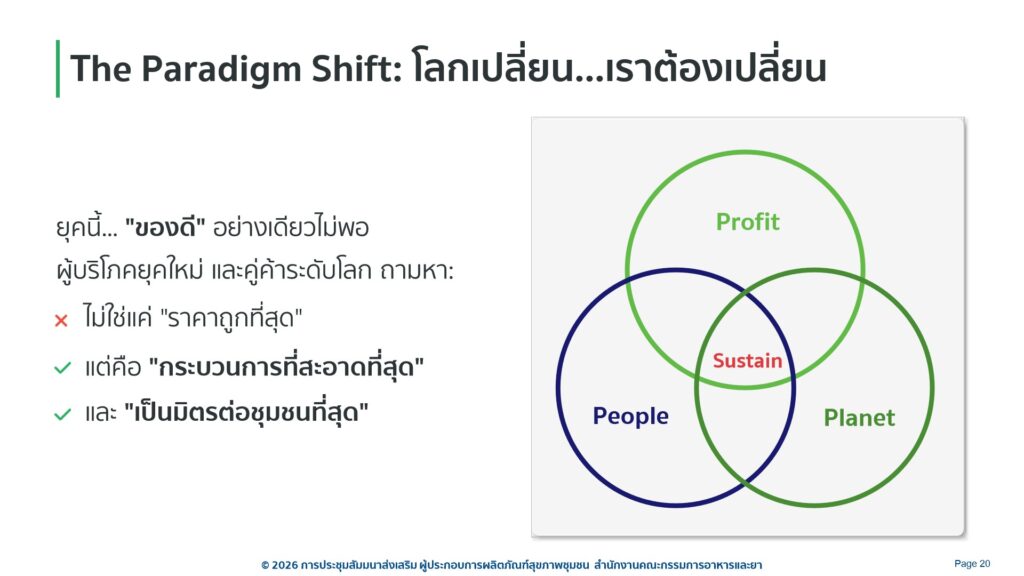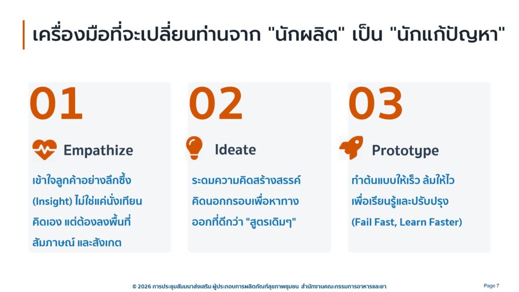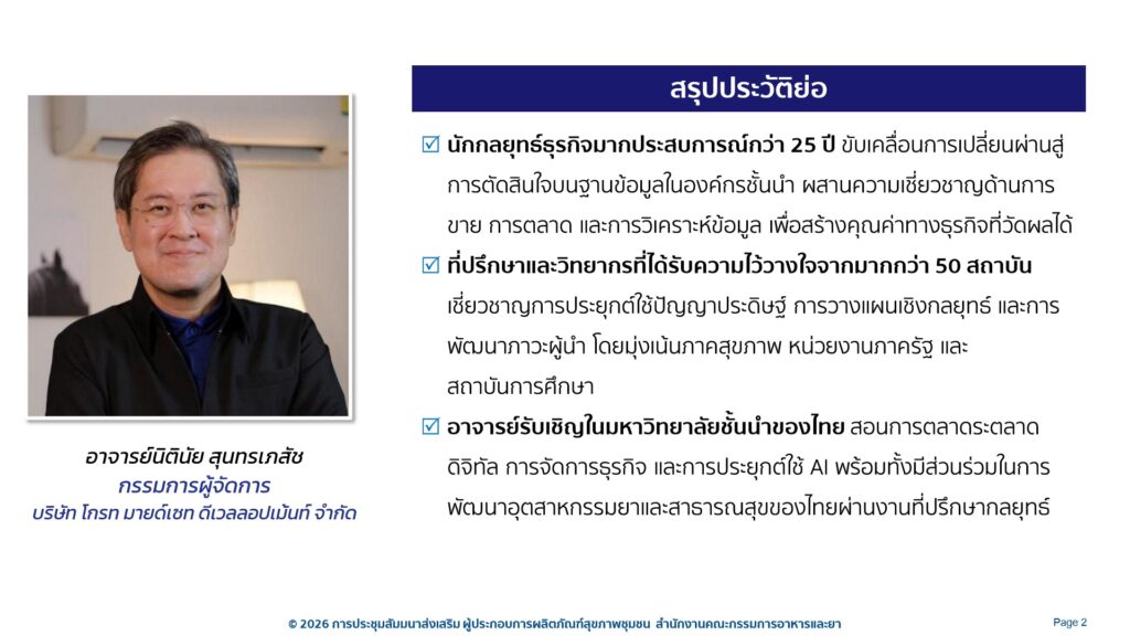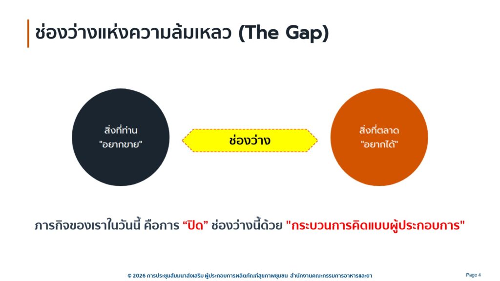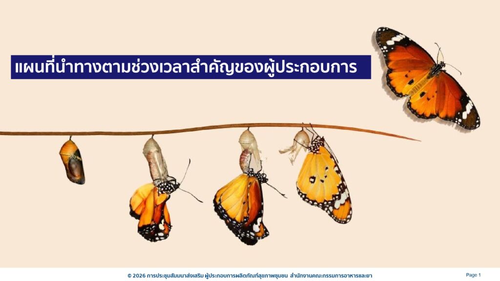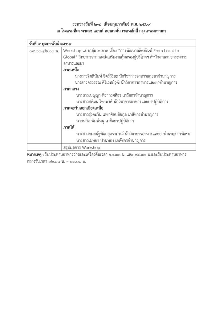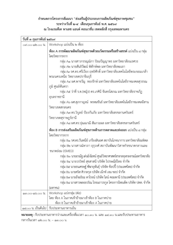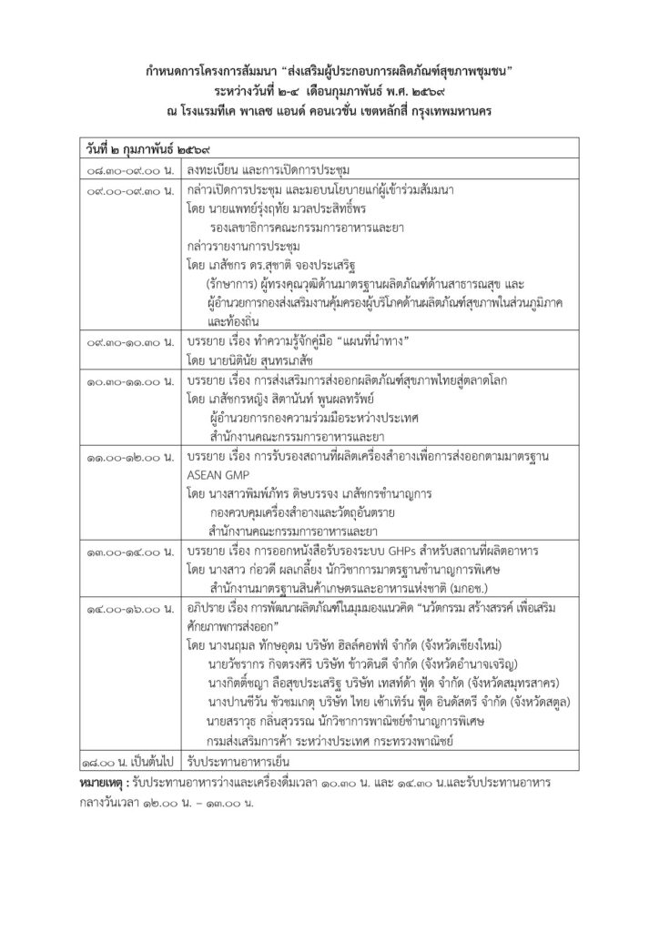 กำหนดการโครงการสัมมนา “ส่งเสริมผู้ประกอบการผลิตภัณฑ์สุขภาพชุมชน” ระหว่างวันที่ 2-4 เดือนกุมภาพันธ์ พ.ศ. 2569 ณ โรงแรมทีเค พาเลซ แอนด์ คอนเวชั่น เขตหลักสี่ กรุงเทพมหานคร